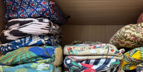 Nous avons sélectionné pour vous des accessoires 100% coton matelassé et surpiqué en Inde :